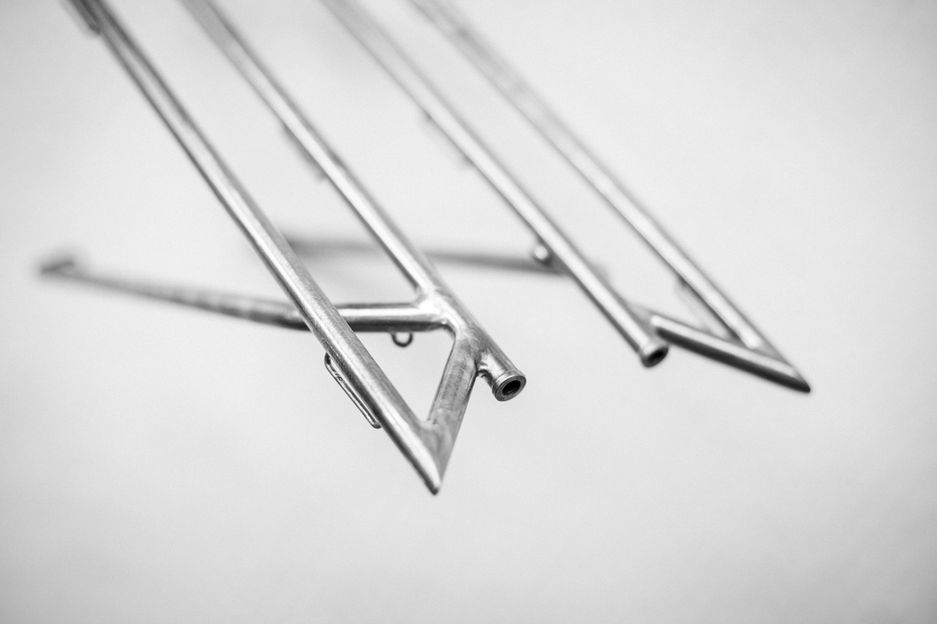 Les premières brasures de ce projet ont eu lieu fin 2022. C'était alors le 7eme cadre que j'entamais. Romain souhaitait un vélo hors de l'ordinaire et multi-compatible. Tasseaux de frein pour 2 tailles de roues, pour un montage en cantilever. Fourche truss, mais en pivot conique. Patte arrière type piste mais avec patte de dérailleur. Tige de selle intégrée. Porte paquet avant et arrière démontable avec possibilité de rebrancher facilement les feux. Moyeu dynamo Son SL auto-connecteur, ...