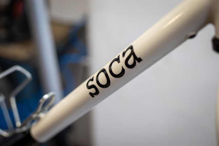 Voilà un vélo muri de longue date et dont Paul a du souvent rêver... Pour partir à l'aventure dans son jardin que sont les Hautes-Vosges, nous avons concocté ce vélo, prêt aussi bien à des sorties sportives qu'au voyage. Prévisions pour des bagages, 3 supports de porte bidon et prévision dynamo sont discrètement intégré au cadre et à la fourche. Équipé d'une transmission 12 vitesses super polyvalente, de pneus en 40mm passe partout et sublimé d'une magnifique robe bicolore !