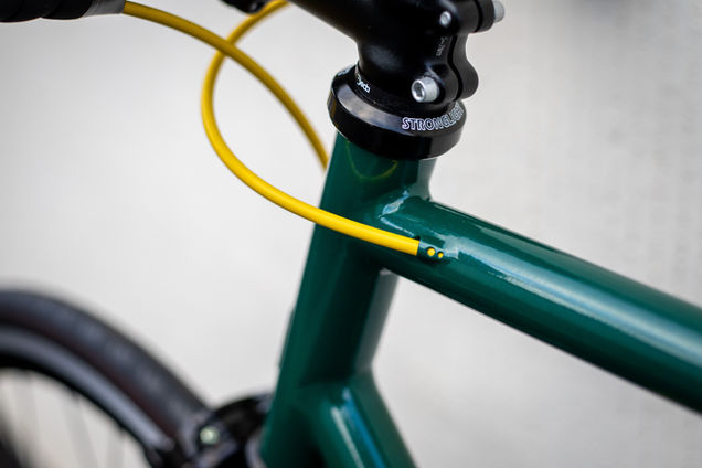Pour arpenter la région parisienne, Sylvain m'a missionné pour réaliser son nouveau vélo. Au programme un cintre bullhorn, un tube supérieur horizontal, un passage de frein arrière interne, une transmission en 52x16 et une paire de roues à la carte. Comme toujours une conception sur mesure via une étude posturale, et la désormais fameuse peinture à la carte de Paul's Workshop !